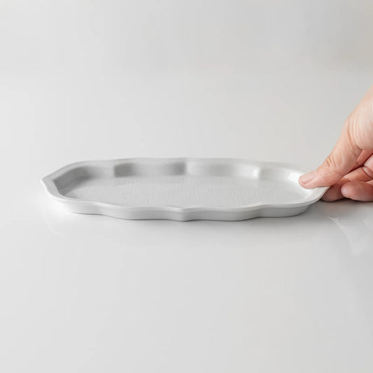 九谷焼といえば、五彩色絵の絵柄が特徴的な器。そんな古くから愛される九谷焼の形(かたち)本来の魅力にフォーカスしたシリーズ、KATA KUTANI(型九谷)。 柄がないことで、今までは気づかなかった形の美しさが際だつシンプルな白磁器。 今回は、和洋問わず合わせやすいKATA KUTANIシリーズをご紹介します。 01|菊型皿 菊形皿|貫入白磁(160mm) ¥1,595 菊形皿|貫入白磁(190mm) ¥2,090 菊の花弁のようなリムが美しい菊型皿。花びらのように細かく形どられているので、シンプルな料理やスイーツにぴったりです。 02|八角モッコ皿 八角モッコ皿|貫入白磁(140mm) ¥1,210 八角モッコ皿|貫入白磁(200mm) ¥2,200 モッコとは、縄を網目状に編んで四隅に吊紐をつけた運搬用具の一種。面の合わせ目が少し盛り上がった八角形です。比較的シンプルなので、料理や惣菜を盛っても映えるお皿です。 03|隅切角皿 隅切角皿|貫入白磁(130mm) ¥1,210 隅切角皿|貫入白磁(190mm) ¥2,200 緩やかな曲線でクラシカルなテイストの角皿です。小さいサイズと大きいサイズで、微妙に形が異なります。取り分け皿にも使いやすいシンプルなデザインです。 04|稜花型...